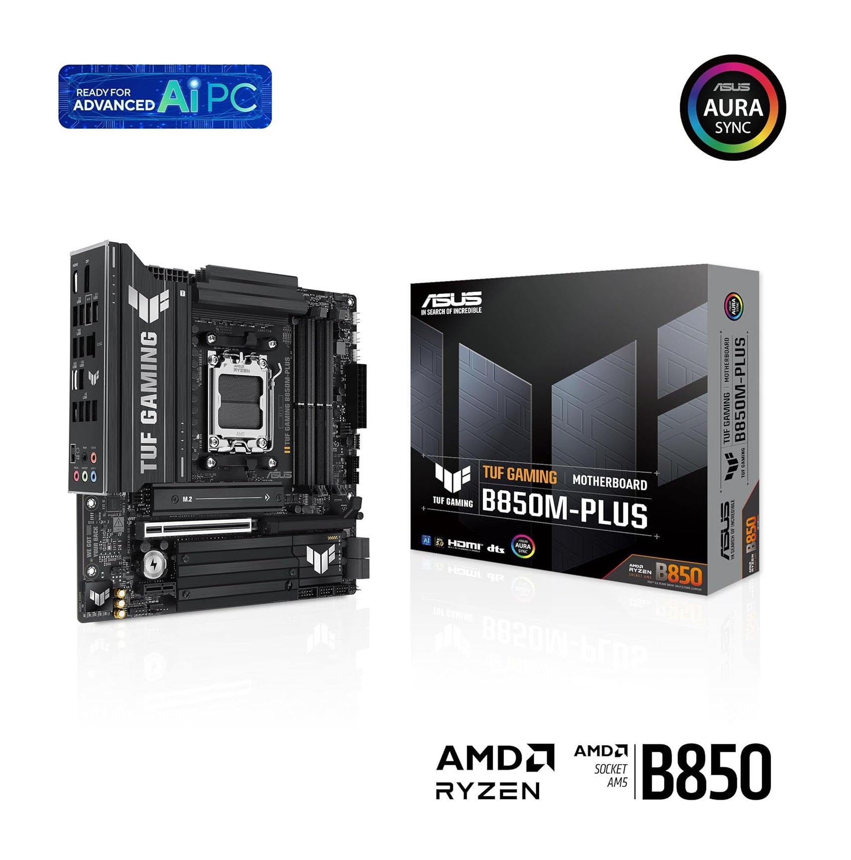 ASUS TUF GAMING B850M-PLUS takes all the essential elements of the latest AMD Ryzen™ processors and combines them with game-ready features and proven durability. Engineered with military-grade components, an upgraded power solution and a comprehensive cooling system.