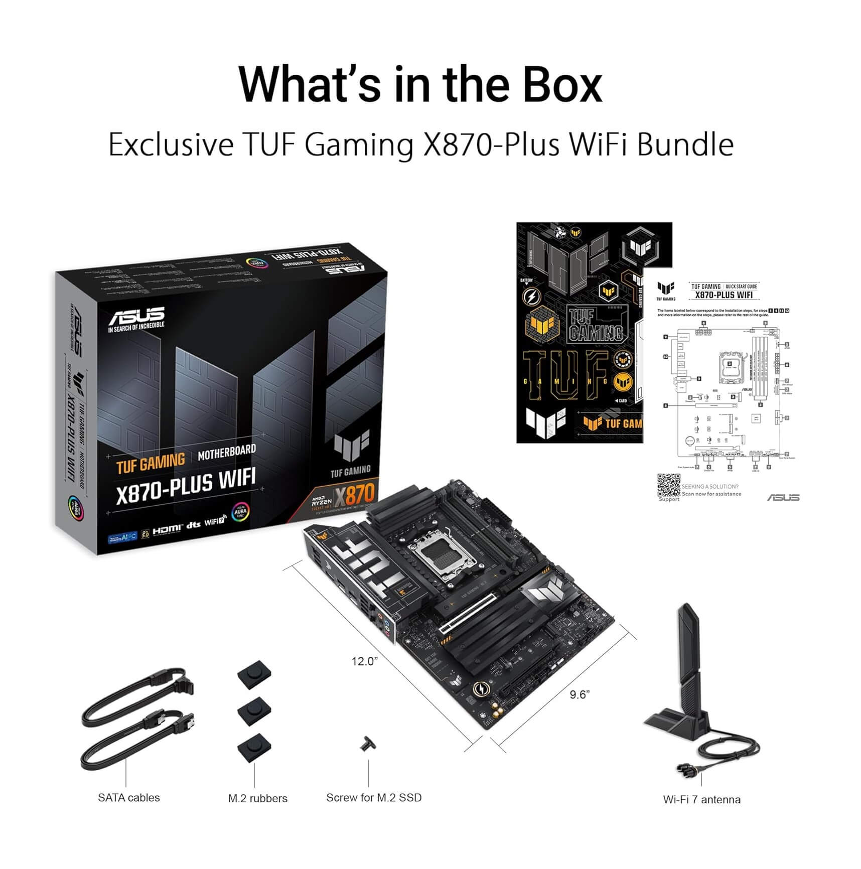 ASUS TUF GAMING X870-PLUS WIFI takes all the essential elements of the latest AMD Ryzen™ processors and combines them with game-ready features and proven durability.