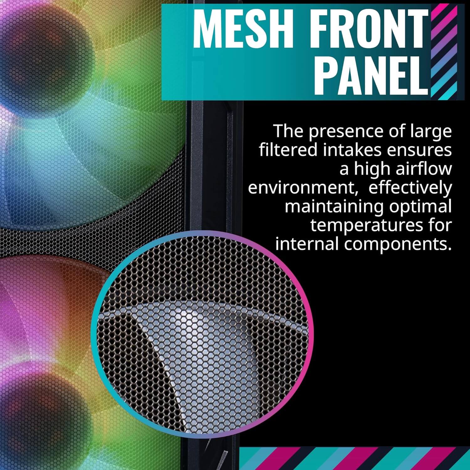 The mesh panels and large fan support ensure that there is always a steady flow of air through the case, reducing the risk of thermal throttling and extending the lifespan of the components. The ARGB lighting on the fans adds a visual flair, creating a striking look that can be customized to match the rest of your build.