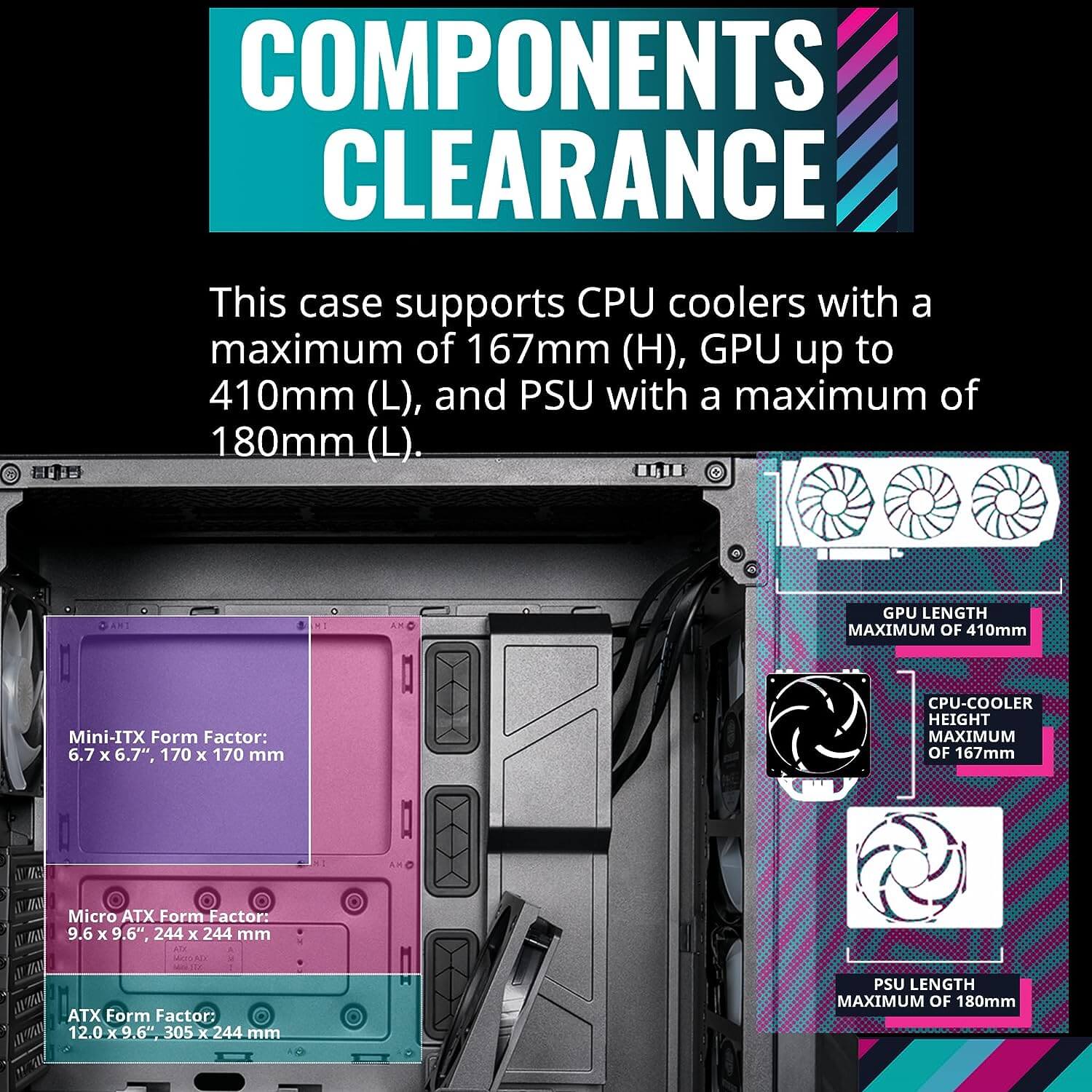 Spacious Interior: Supports ATX, Micro-ATX, and Mini-ITX motherboards, with ample room for large graphics cards, multiple storage drives, and advanced cooling solutions.