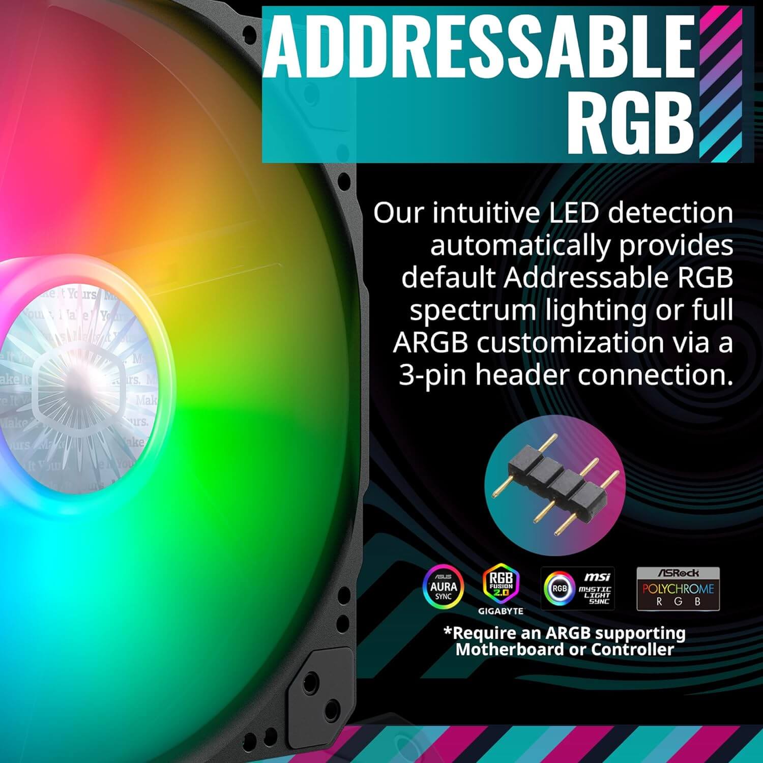 ARGB Lighting: The case includes pre-installed ARGB fans that provide customizable lighting effects, adding a vibrant and dynamic look to your build.
