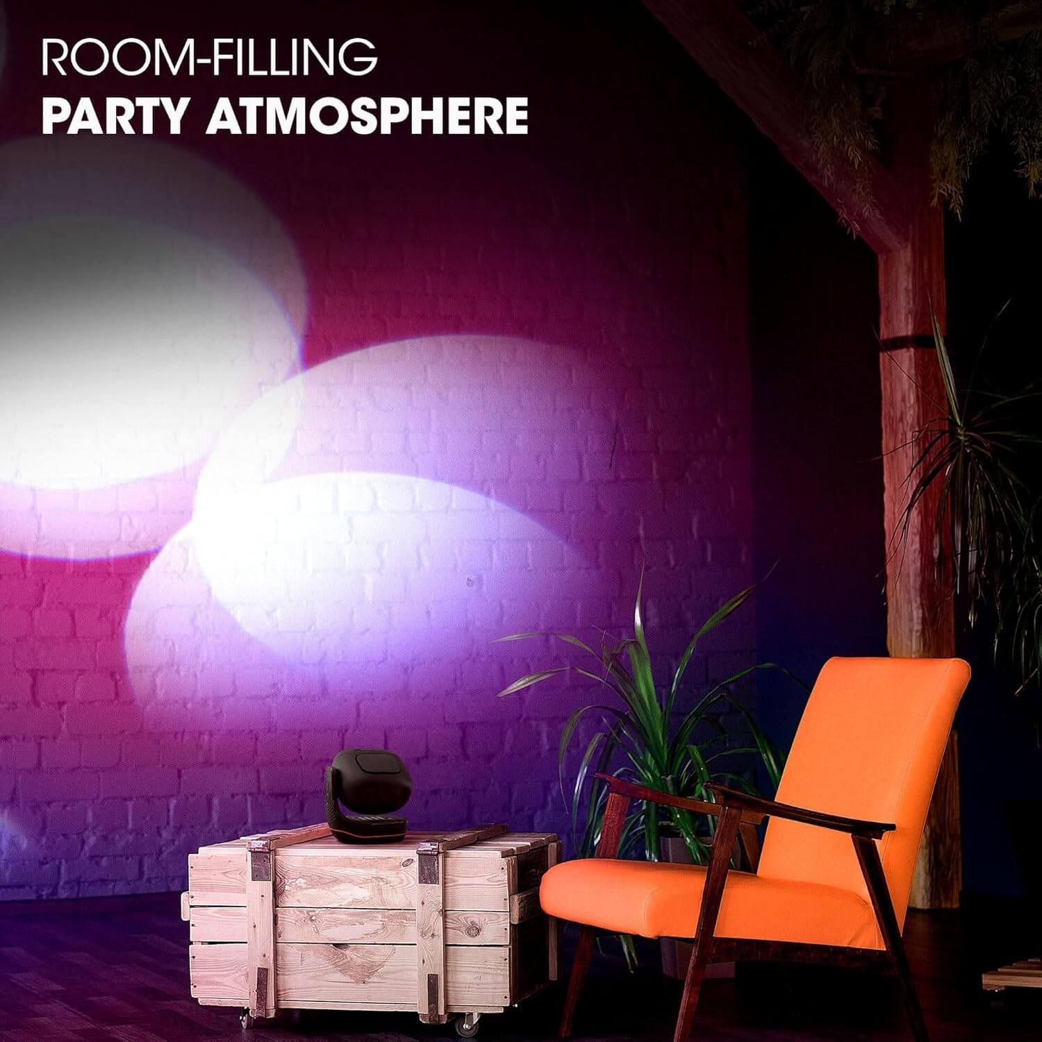 Just one JBL PartyLight Beam can fill a room up to 400 square feet (40 square meters) with 20 watts of immersive light shows.