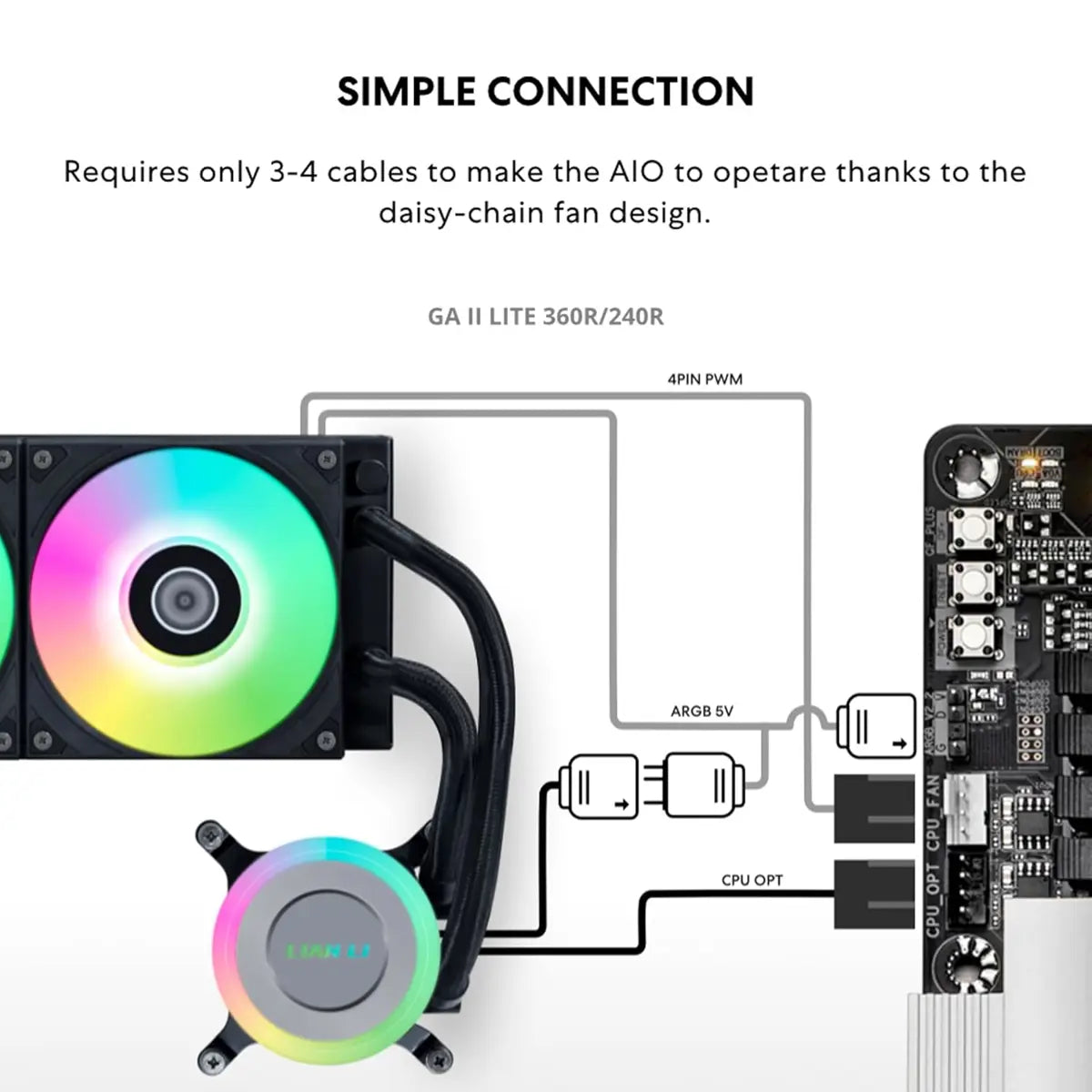The compact GA II Lite pump reaches speeds of up to 3800 RPM, providing powerful cooling for efficient CPU temperature management.