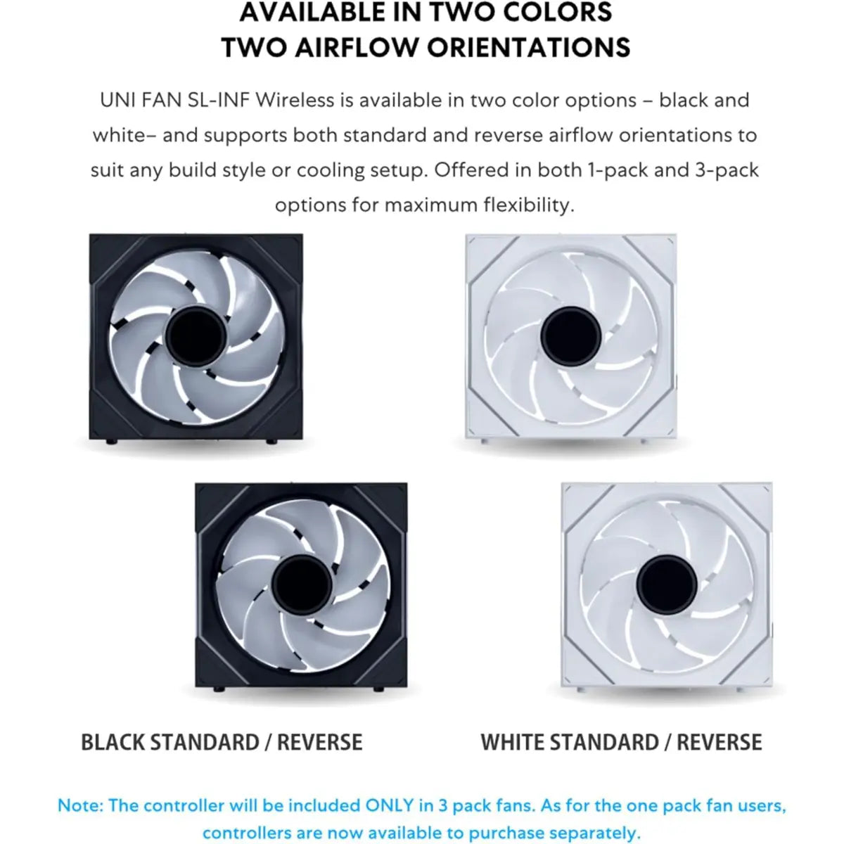 Lian Li UNI Fan SL-Infinity Wireless 120mm ARGB Reverse Blade Case Fan with Controller - Triple Fan Pack - White