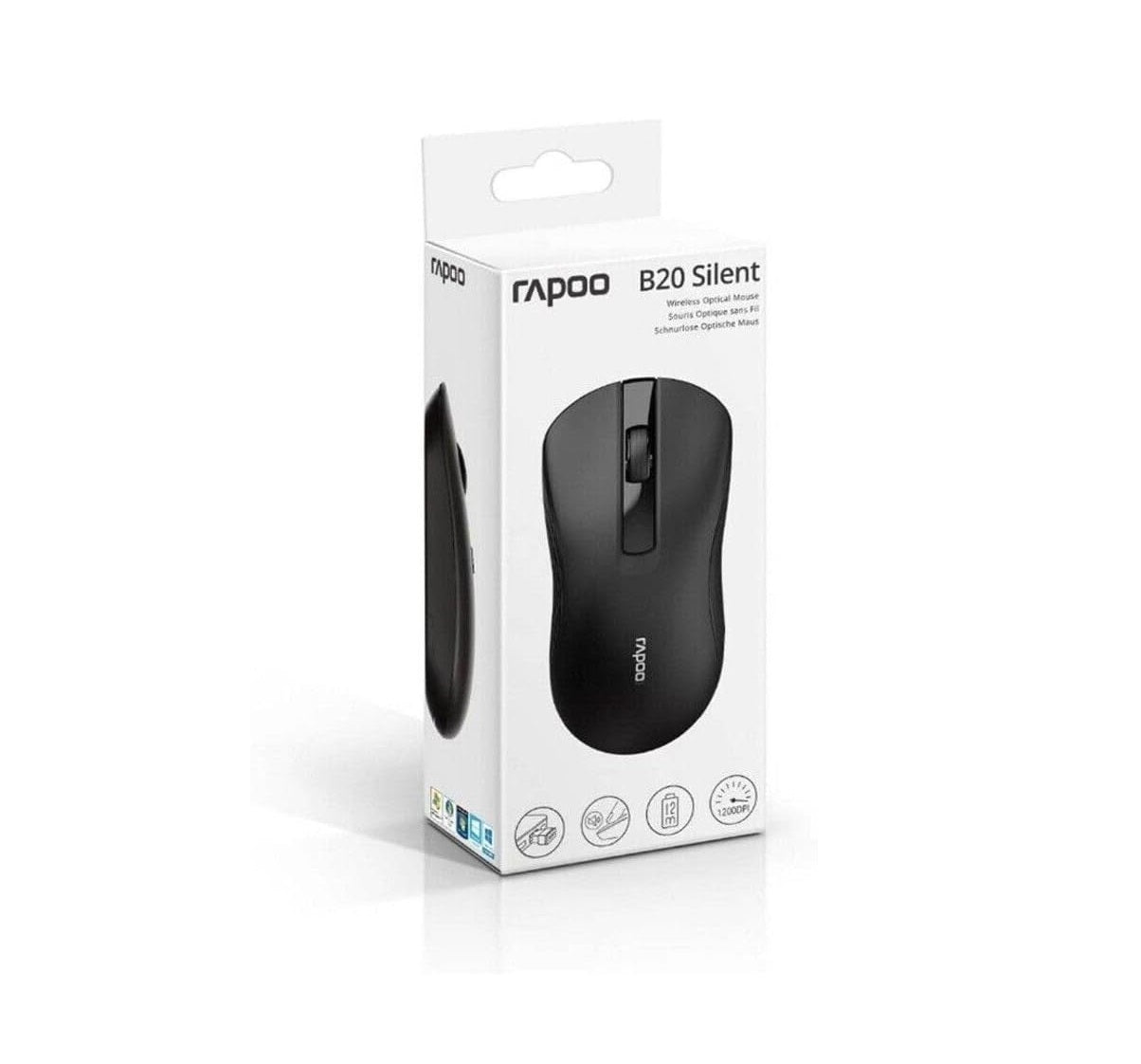 The Rapoo B20 SILENT Wireless Optical Mouse is a 2.4G wireless mouse. Comfortable on either hand, silent click, powered by a single AA alkaline battery and has a battery life of up to 12 months. Ideal for both home and office use.