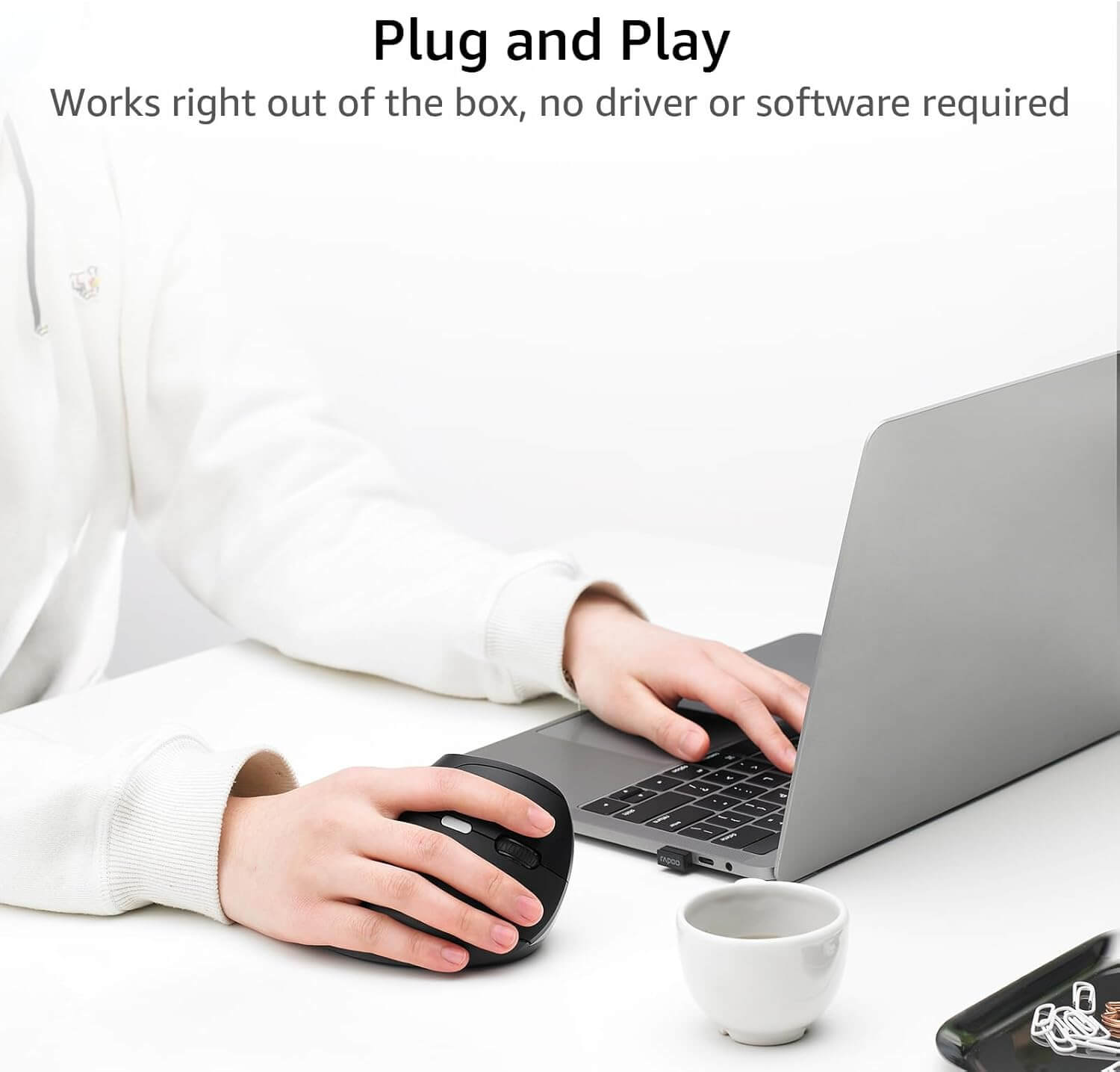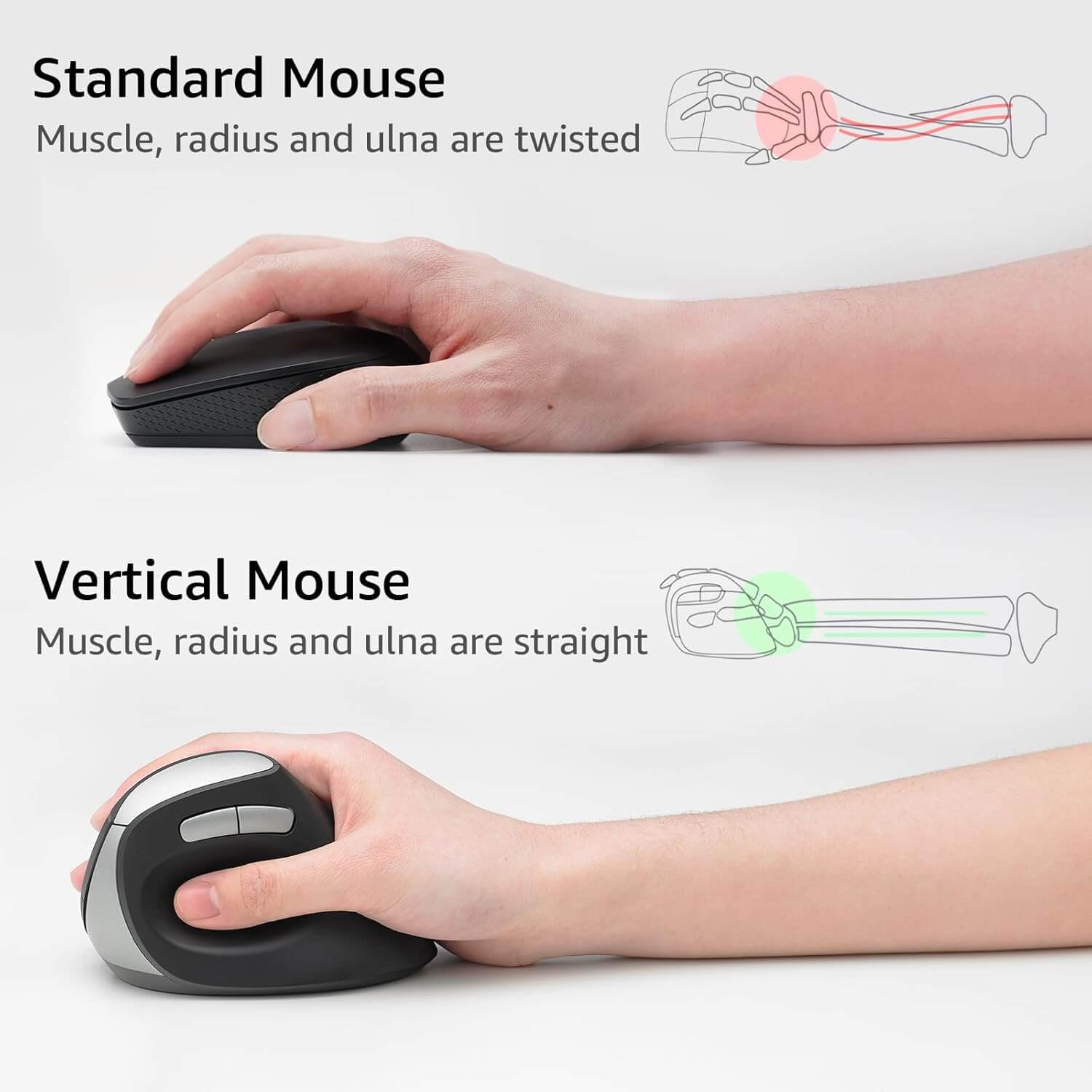 Designed for a more natural and straight forearm posture that places your arm in a natural handshake position, this ergonomic shaped vertical mouse fits your arm and wrist like a glove which can help you reduce muscular strain.