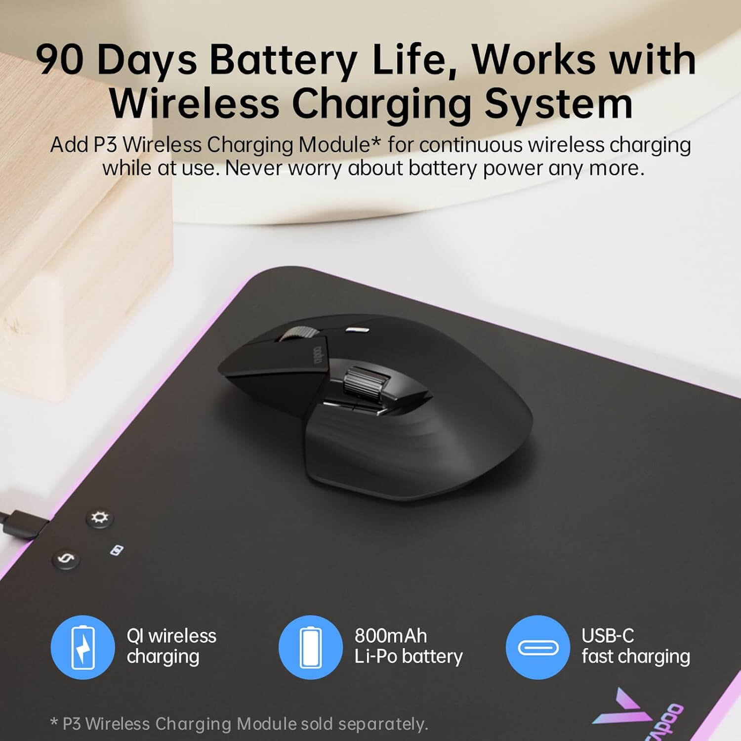 Assign shortcuts, media keys, or macros to streamline your work and boost efficiency.Works with most Qi wireless charging mouse pads, enjoy an effortless power boost while at use, and embrace the convenience of cord-free charging. [Need to purchase P3 Wireless Charging Module separately]